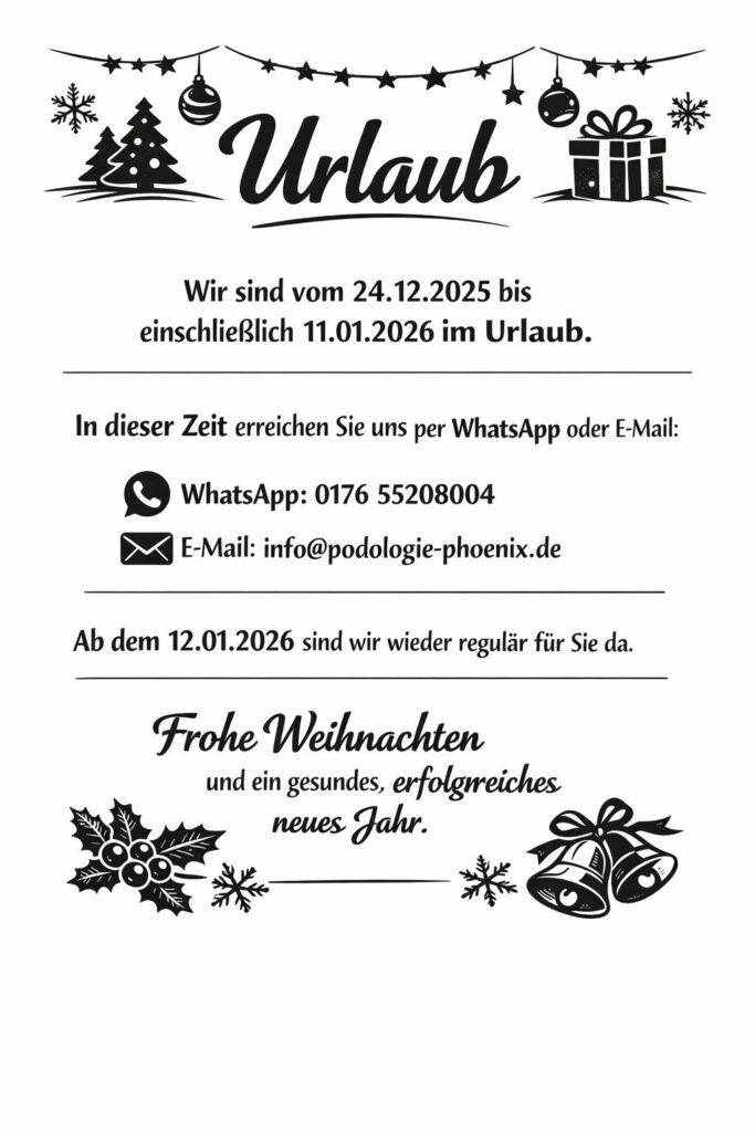 Bei Podologie-Phoenix setzen wir uns dafür ein, Ihnen außergewöhnliche Pflege für Ihre Füße zu bieten. Unser Team erfahrener Podolog:innen kombiniert fortschrittliche Behandlungsmethoden mit individueller Betreuung, um Ihnen zu helfen, schmerzfrei zu leben und aktiv zu bleiben. Ob Sie ein spezifisches Fußproblem haben oder eine regelmäßige medizinische Fußpflege suchen – wir sind für Sie da, um Ihre Fußgesundheit in jedem Schritt zu unterstützen.